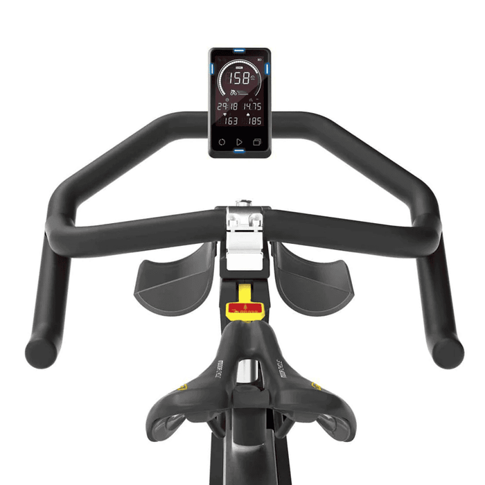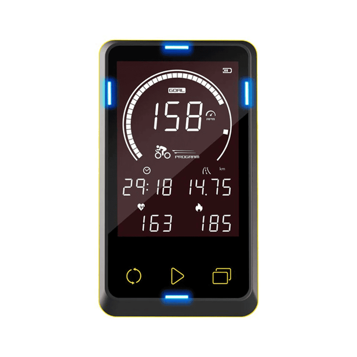 The display provides valuable feedback such as: time, distance, calories, heart rate, RPM, speed and battery level.