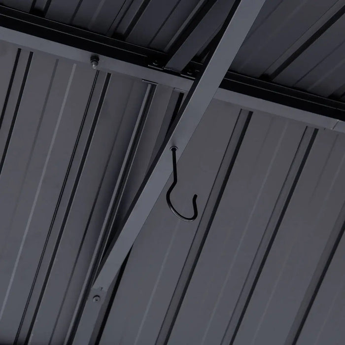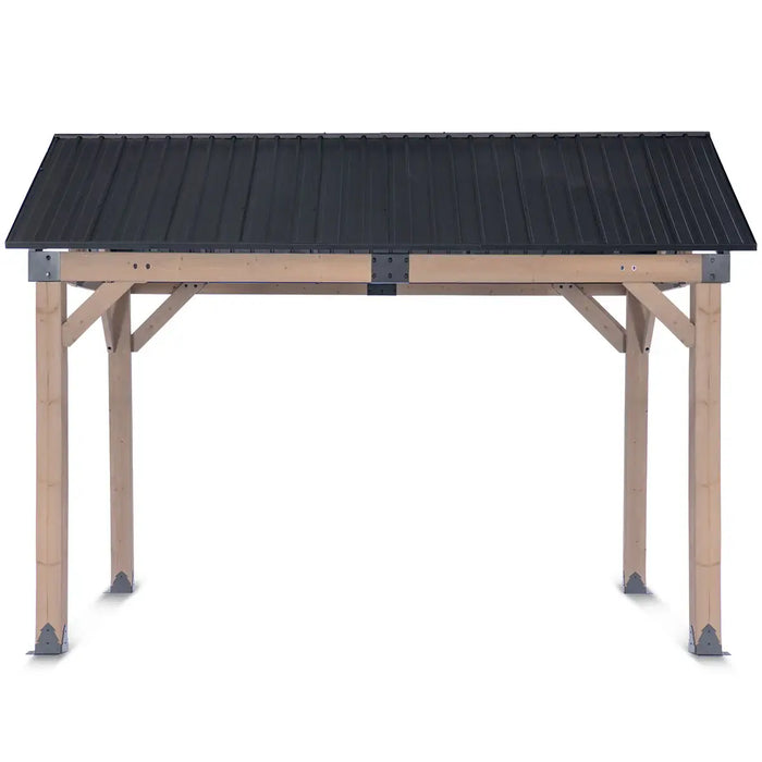 The 29-gauge galvanized steel roof protects you from rain and helps lower heat on sunny days.